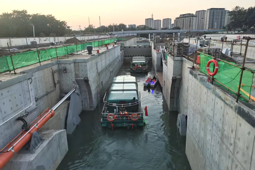 坝河颐堤港湾至温榆河段的15公里是整个航线的“试航先锋”,穿越将台、东坝、金盏等核心区域,北京建工城乡集团金河水务项目团队在这里承担了船闸等一系列配套建筑物的施工任务,为美丽的坝河航线保驾护航。