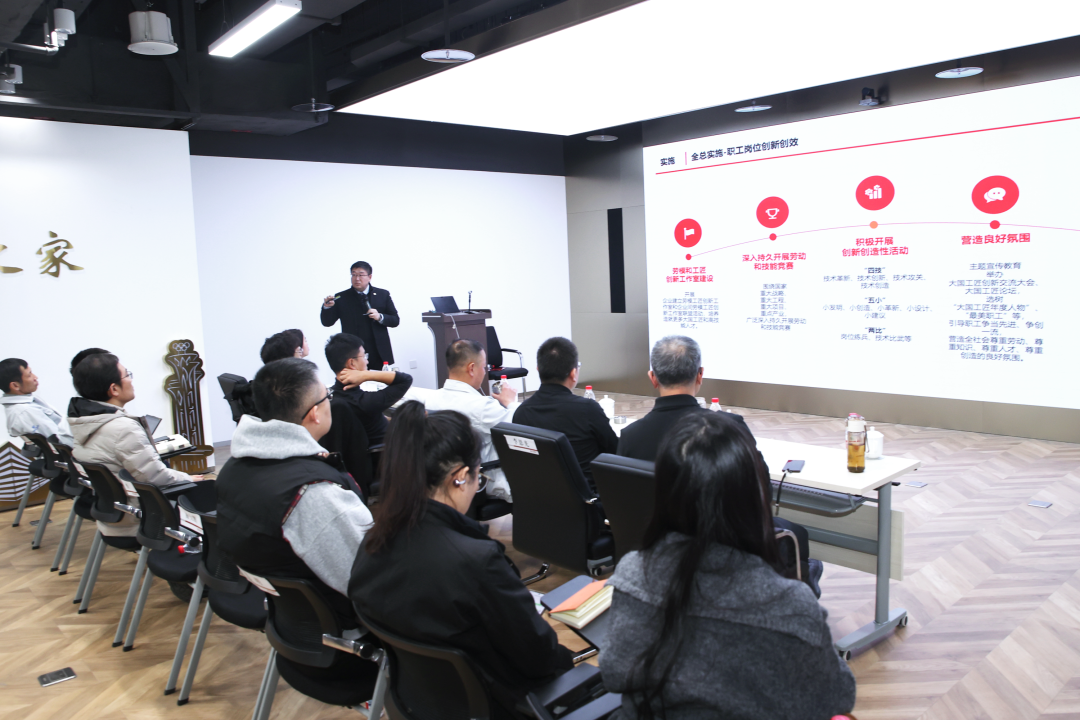 张军在总结讲话中强调,集团全体职工要争做新时代建筑行业的“创新先锋”,在岗位上锻造过硬本领,重点锚定“方向”创新,与时代同频共振;立足“岗位”创新,让成果落地生根;强化“协同”意识,聚合力共破难关;秉持“终身”学习,为创新筑牢根基。他要求集团工会组织要构建全链条保障体系,做职工创新的“坚强后盾”,重点以思想引领铸魂,营造浓厚创新氛围;以平台搭建聚力,促进创新资源共享;以精准服务赋能,破解创新发展瓶颈;以激励机制聚力,激活内生创新动力。