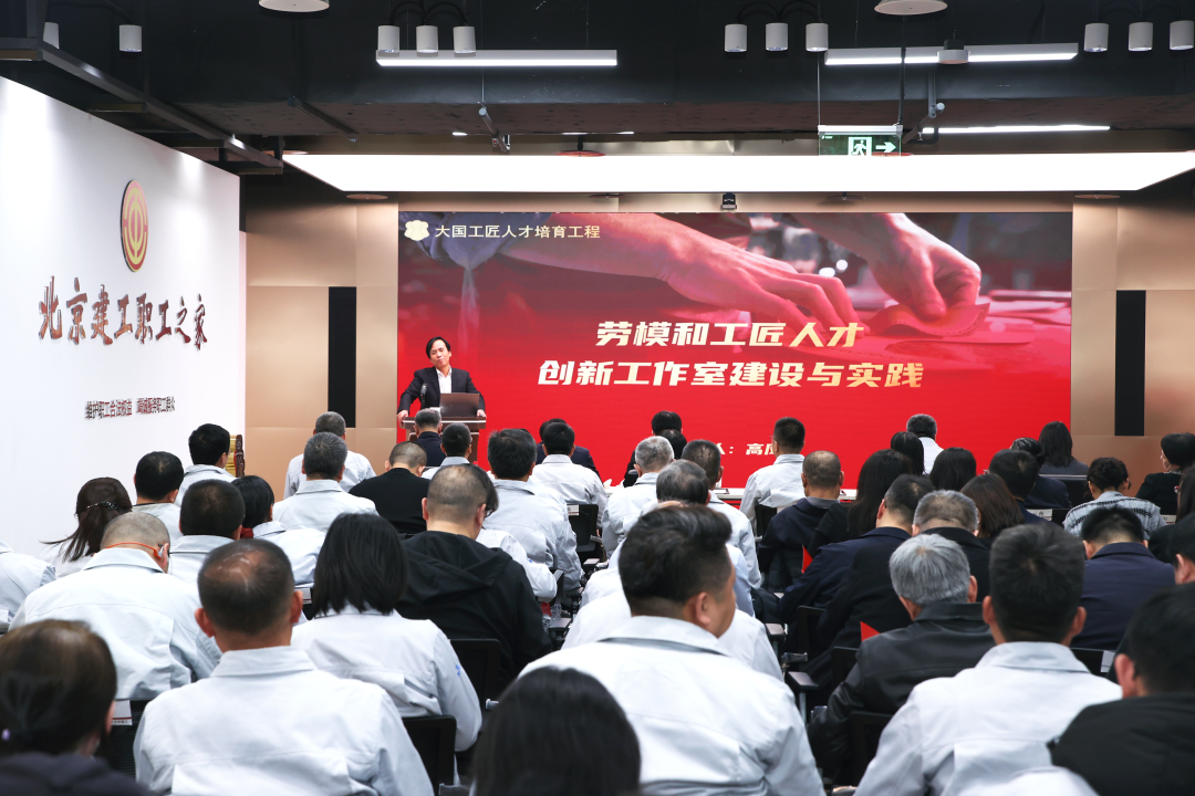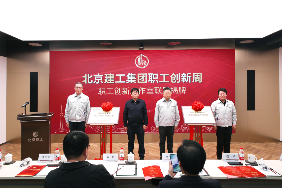 张军、张宇晶与“绿色城市更新职工创新工作室联盟”“智能及高效建造职工创新工作室联盟”两家联盟召集人共同揭牌;高凤林作《劳模和工匠人才创新工作室建设与实践》的主旨分享。