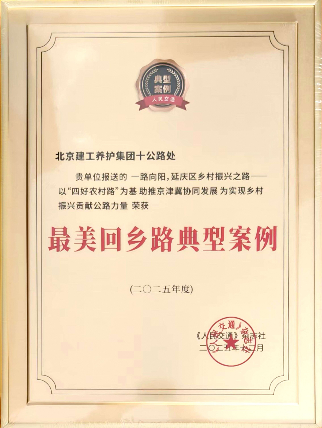 由北京建工养护集团报送的《一路向阳,延庆区乡村振兴之路——以“四好农村路”为基 助推京津冀协同发展 为实现乡村振兴贡献公路力量》,成功入选《人民交通》杂志社“最美回乡路典型案例”。