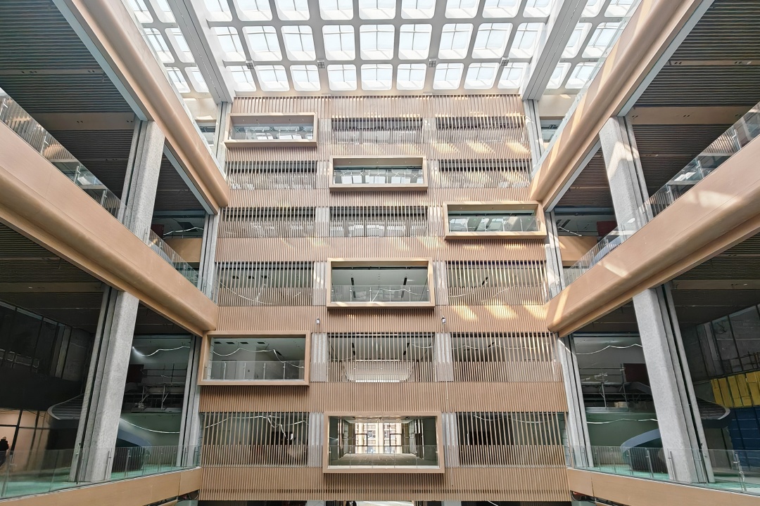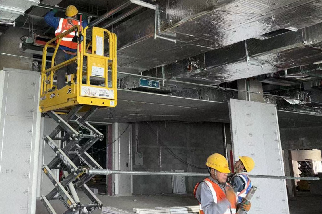 项目改造最大的难点,就在于“利旧”二字。“既有结构与设计图纸的偏差、利旧设备性能的未知、新旧材料的精准衔接,每一项都对施工组织、技术攻关和质量管控提出了更高要求。”项目总工程师孟志坤介绍说。面对重重挑战,项目团队迎难而上,打出“利旧”与“焕新”协同推进的组合拳,逐一攻克施工重难点问题,目前项目结构改造、幕墙安装已完成,机电安装、调试与装饰装修施工正同步穿插进行。