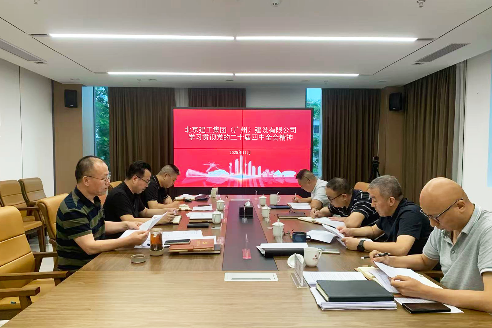 北京建工集团党委深入学习贯彻习近平总书记在党的二十届四中全会上的重要讲话精神和全会精神,第一时间组织传达学习,并就学习宣传贯彻落实工作进行部署安排。集团公司党委理论学习中心组开展专题研讨,切实领会核心要义,带动广大职工原原本本、全面系统学习,把思想和行动切实统一到党中央决策部署上来,确保全会精神在集团落地生根。