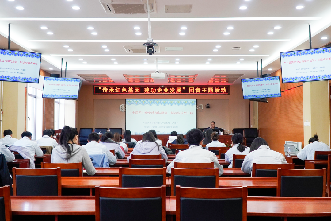 五建集团领导班子率先垂范领学,将党的二十届四中全会精神纳入党委会“第一议题”进行深入学习,精准把握精神实质,紧密结合企业改革发展实际开展专题研讨,聚焦核心工作找准切入点,进一步明确未来发展的方向路径与实践举措;邀请专家重点围绕文化强国建设等方面内容讲授课程,引导青年职工将思想与行动统一到全会精神上来,立足岗位、挺膺担当,为推动企业高质量发展贡献青春力量。