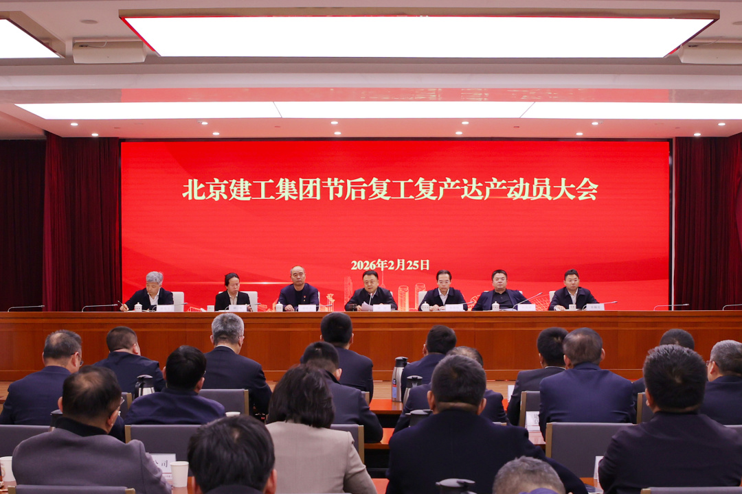 2026-02-262月25日下午,北京建工召开节后复工复产达产动员大会,坚决贯彻市委市政府关于抓好一季度“开门红”的决策部署,明确提出“开工就是决战、起步就要冲刺”的工作要求,号召全体干部职工全力以赴推进复工复产达产,努力实现一季度“开门红”,为集团“十五五”发展开好局、起好步。集团公司领导班子成员、总工程师、三大总监、副三总师,各部室负责人,各二级单位主要领导和生产安全主管领导在主会场参会,各二级单位其他相关人员在视频分会场参会。