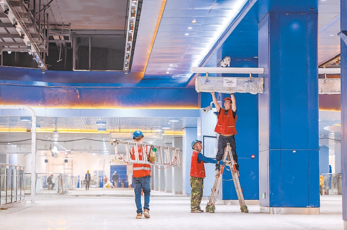 2025-10-09“越是最后关头,越不能松劲儿!大伙儿再加把劲,争取半个月内把所有出入口装修做完!”在北京建工轨道交通13号线04标项目施工现场,北京在施体量最大的地铁车站——新龙泽站(工程名)建设进入最后冲刺阶段。为确保工程按计划顺利完成,180多名建设者坚守在一线,“十一”假期工地照常施工。