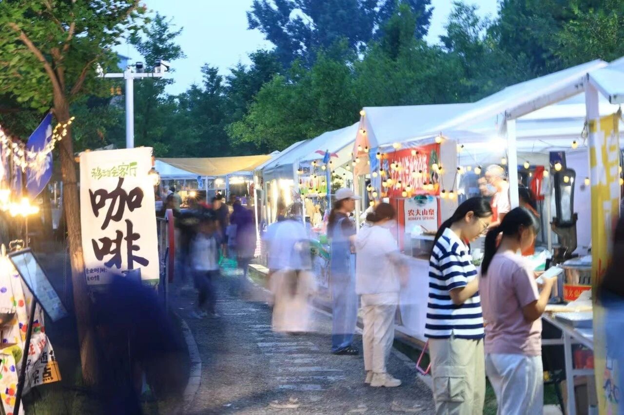 辛庄市集沿创客街两侧及衍生的木屋空间而成市,最初是自发形成的以二手物品、手工制品及食品为主的零散摊位,后吸引众多创客、村民的加入,逐渐形成了一个集餐饮、手工、文创、农副产品等于一体的创意性生活市集。自2025年“五一”后,辛庄市集拆分为以创客街为链接的田野东市和烟火西市两部分。田野东市以创客街东侧,焕新后的辛庄Park阵地,面向年轻人及亲子客群,打造集主题市集、田园景观与休闲娱乐为一体的周末度假空间;烟火西市则以创客街西侧的木屋空间为阵地,是一处以餐饮小吃及文创好物为主题的市集空间。