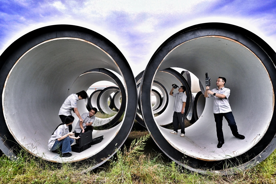 ▲市政工程研究院科研工作者进行盾构隧道足尺模型试验