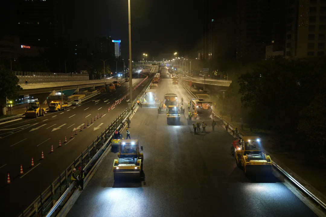 为最大程度减少道路施工对市民出行的影响,项目团队提前做好项目策划,在夜间23时至凌晨5时进行施工,同时加强施工组织,确保各工序无缝衔接,高效推进施工作业。