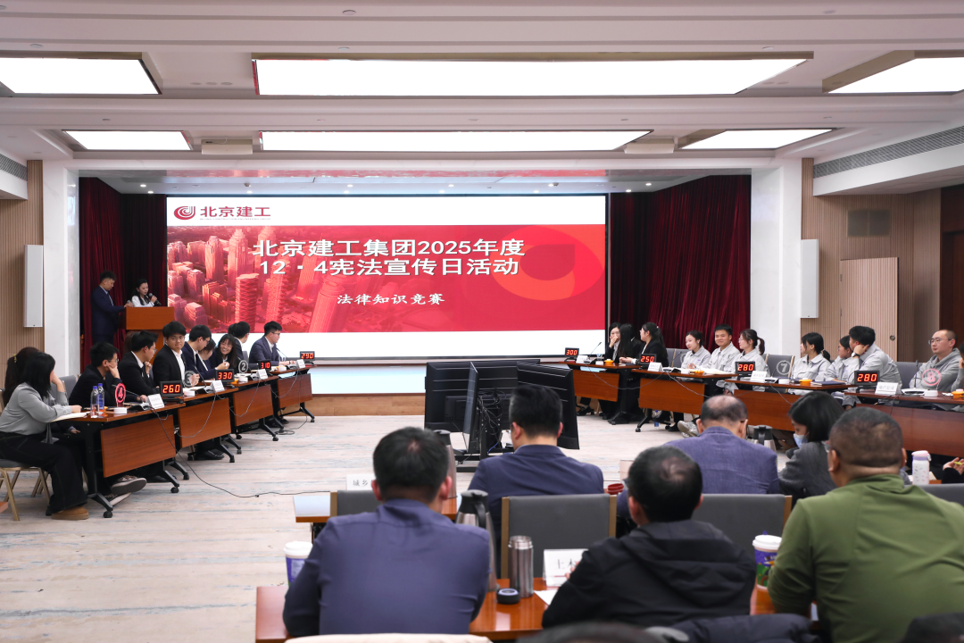 2025-12-05今年12月4日,是我国第十二个国家宪法日。北京建工围绕“学习宣传贯彻习近平法治思想,推动宪法深入人心”的“宪法宣传周”活动主题,深入开展宪法宣传教育,举办宪法日法律知识竞赛决赛,以赛促学、以学促行,在全集团营造尊法学法守法用法的浓厚氛围。一轮轮激烈比拼后,评出一等奖1名,二等奖2名,三等奖4名。