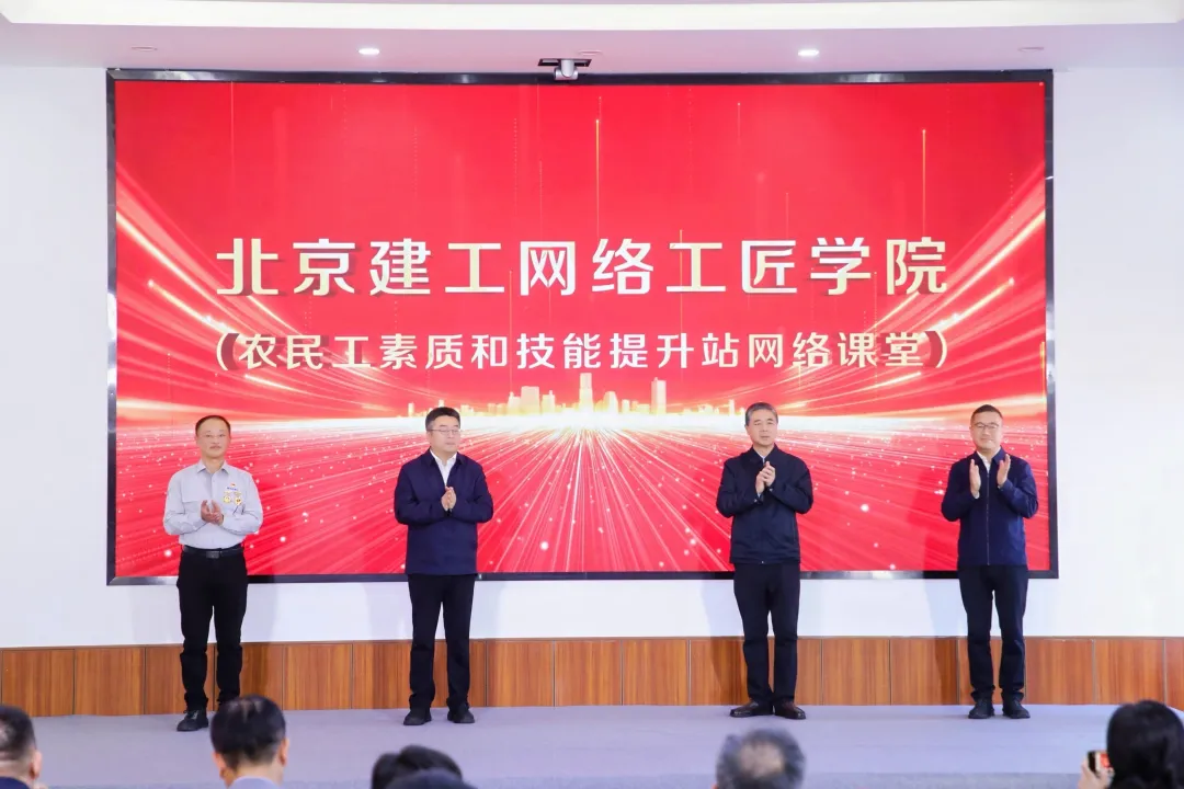 活动中还播放了《“中国工人大思政课”——2025年度全国交通建设产业百名劳模工匠进一线示范宣讲活动回顾》视频。与会领导和建筑业技能工人代表共同为北京建工网络工匠学院(农民工素质和技能提升站网络课堂)按下启动按钮。