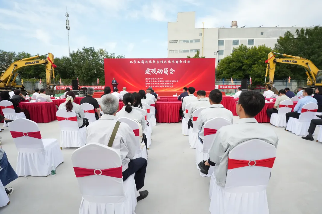 2025-09-299月29日上午,北京工商大学良乡主校区学生宿舍项目建设动员会召开。市政府有关领导,市委教育工委、市教委领导,房山区领导,北京建工集团党委书记、董事长路刚出席大会。市委、市政府各有关部门相关处室负责同志,市教委基建处、房山区大学城管委会、拱辰街道,项目施工单位、设计单位、监理单位相关负责同志,学校全体校领导出席会议,相关职能部门负责人及师生代表参会。动员会宣布“北京工商大学良乡主校区学生宿舍项目开工”,项目正式进入建设阶段。