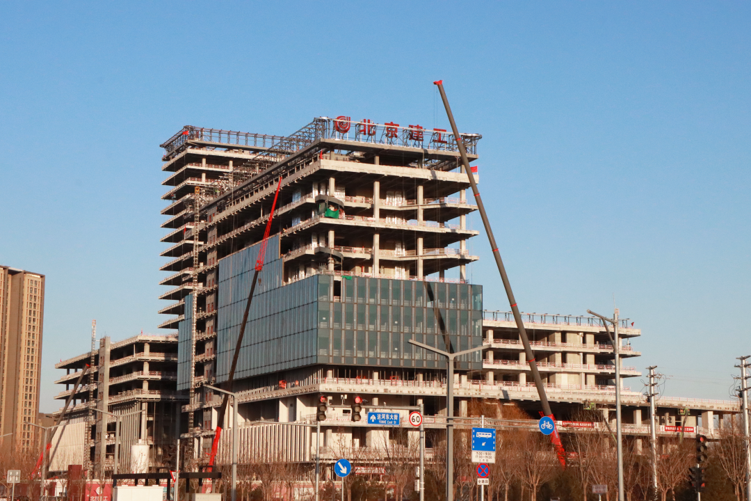 华夏银行总行办公大楼项目是北京市“3个100”重点工程,也是首批搬迁城市副中心体量最大的市属国企总部大楼,总建筑面积约19万平方米。项目建成后将成为北京公共建筑单体规模最大的超低能耗示范项目,为城市副中心高质量发展注入新动能。据项目负责人温慧栋介绍,自开工以来,项目团队锚定目标、迎难而上,提前45天实现主体结构竣工,目前正在有序推进外立面幕墙安装和室内二次结构及机电施工,各项工作衔接紧密,确保工程按期高质量交付。