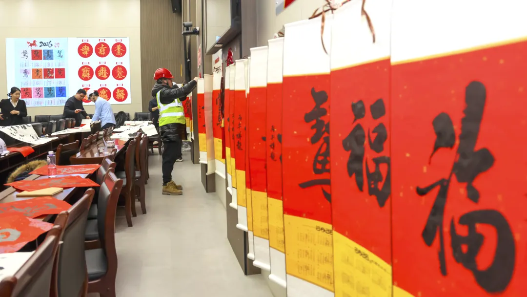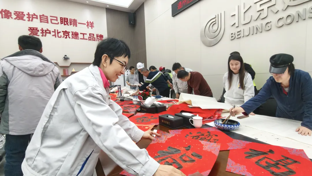 2026-01-27“这春联,比自家买的更有年味儿!”腊八节前夕,北京建工华夏银行总行办公大楼项目现场,通州文艺家将传统文化与新春祝福送到一线建设者手中,执笔的手与筑城的手传递着温暖,共同拉开新春的序幕。