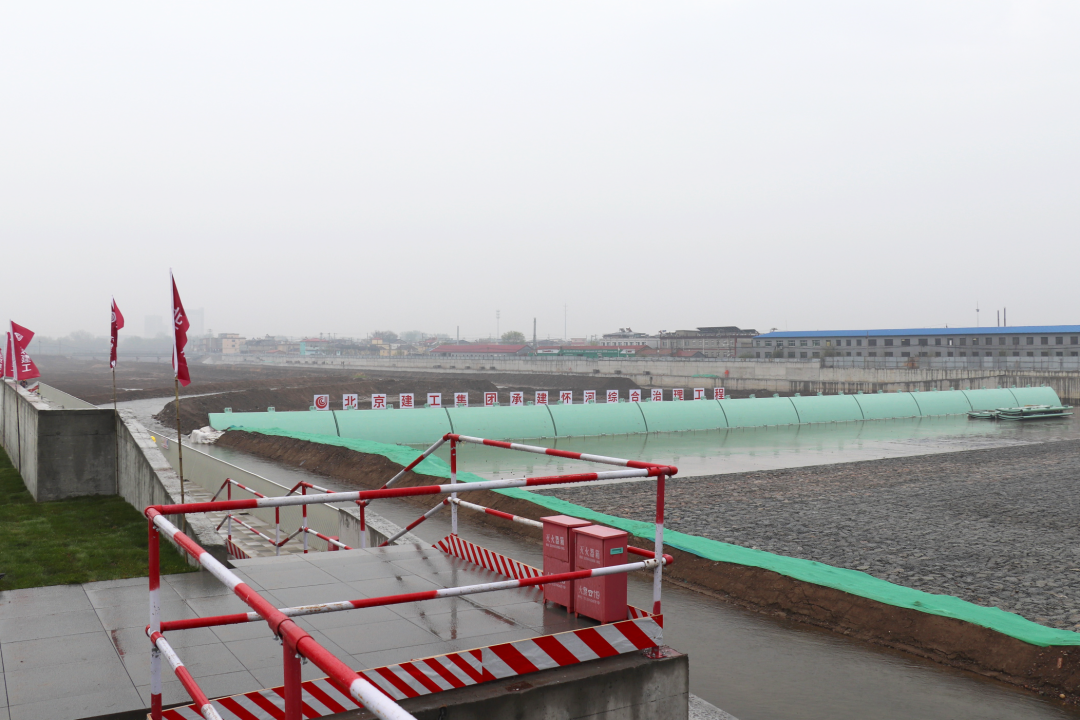 由北京建工承建的怀柔区怀河综合治理工程治理范围起点为怀柔水库坝下溢洪道消力池,终点为区界,主要建设内容包括疏挖整治河道、橡胶坝改闸、桥梁改建、新建桥闸设备间、拆除及恢复巡河路,同步实施桥区防护、排水口改建、生态防护、管线改移及保护、取水泵站改建等工程。施工中,针对管线改移多、杂、难的特点,项目团队建立“一张图、一盘棋”的对接机制,主动与各权属单位协同作战,实现“摸排-改移-施工”精密咬合、分段推进,有力保障施工连续高效进行。同时,项目团队积极与市区主管部门沟通对接,合理规划运输路径与消纳方案,成功落实专用卸土点,实现土方外运绿色、集约、受控。目前,工程总体形象进度接近九成,创业桥闸施工、创业桥桥面施工已完成,景观绿化和道路通行施工正在稳步推进,预计于今年汛期前主体完工。