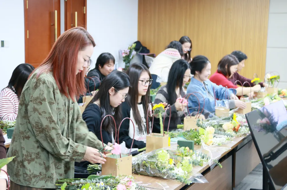 建工路桥集团工会举办了“福蝶绽放·指尖芬芳”活动,女职工们从挑选花材、构思造型开始,一步步学习修剪、固定与搭配,让作品展现出各自不同的“花语”。
